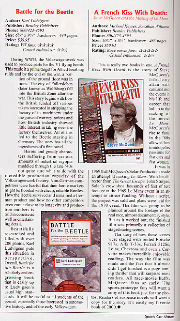 Beautifully researched and filled with over 200 photos, Karl Ludvigsen puts this situation in perspective. Overall, Battle for the Beetle is a scholarly and engrossing book that is easily up to Ludvigsen's usual high standards. It will be useful to all students of the period, especially those interested in automotive history, and of the early Volkswagen.